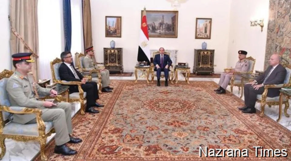 ਫੀਲਡ ਮਾਰਸ਼ਲ ਸਯਦ ਆਸਿਮ ਮੁਨੀਰ, NI (M), HJ, ਪਾਕਿਸਤਾਨ ਦੇ ਆਰਮੀ ਚੀਫ਼ (COAS) ਨੇ ਮਿਸਰ ਦੇ ਰਾਸ਼ਟਰਪਤੀ ਮਹਾਮਹਿਮ ਅਬਦੁਲ ਫਤਾਹ ਅਲ-ਸੀਸੀ ਨਾਲ ਇਤਿਹਾਦੀਆ ਪ੍ਰੈਜ਼ੀਡੈਂਸ਼ਲ ਪੈਲੇਸ, ਕਾਇਰੋ ਵਿੱਚ ਮੁਲਾਕਾਤ ਕੀਤੀ।