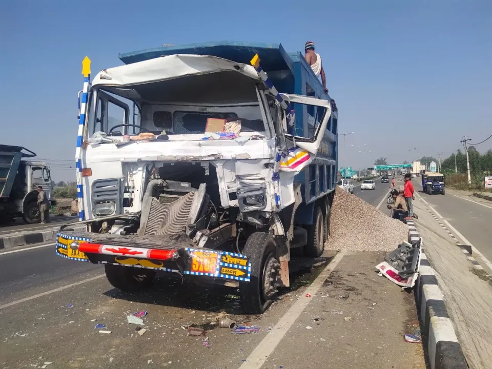 ਭੋਗਪੁਰ 8 ਨਵੰਬਰ (ਸੁਖਵਿੰਦਰ ਜੰਡੀਰ) ਭੋਗਪੁਰ ਨਜ਼ਦੀਕ ਚੌਲਾਂਗ ਟੋਲ ਪਲਾਜ਼ਾ ਦੇ ਕੋਲ ਟਿੱਪਰ ਨੰਬਰ ਪੀ ਬੀ 06 ਏ ਕੇ 4141 ਜੋ ਕਿ ਬੱਜਰੀ ਦੇ ਨਾਲ ਭਰੀ ਹੋਈ ਸੀ।ਅਤੇ ਮੀਰਥਲ ਤੋਂ ਫ਼ਗਵਾੜਾ ਨੂੰ ਜਾ ਰਹੀ ਸੀ। ਚੋਲਾਂਗ- ਦੇ ਟੋਲ ਪਲਾਜ਼ਾ ਦੇ ਕੋਲ ਭਿਆਨਕ ਹਾਦਸਾ ਵਾਪਰ ਗਿਆ ਟਿੱਪਰ ਡਰਾਈਵਰ ਦੀਪਕ ਸ਼ਰਮਾ ਦਾ ਕਹਿਣਾ ਹੈ ਕਿ ਉਹ ਸਵੇਰੇ ਪੰਜ ਵਜੇ ਦੇ ਕਰੀਬ ਟਿੱਪਰ ਲੈ ਕੇ ਫਗਵਾੜਾ ਨੂੰ ਜਾ ਰਹੇ ਸਨ। ਚੋਲਾਂਗ ਟੂਲ ਪਲਾਜ਼ਾ ਦੇ ਕੋਲ 6 ਟੈਂਰਾ ਵੱਡੀ ਗੱਡੀ ਜੋ ਕੇ ਰੋਡ ਦੇ ਉੱਪਰ ਖਲੋਤੀ ਹੋਈ ਸੀ। ਅਤੇ ਅਚਾਨਕ ਟਿੱਪਰ ੳਸ ਵੱਡੀੇ ਗੱਡੀ ਦੇ ਮਗਰ ਜਾ ਵੱਜੀ ਅਤੇ ਟਿੱਪਰ ਦਾ ਭਾਰੀ ਨੁਕਸਾਨ ਹੋਇਆ।ਅਤੇ ਵੱਡੀ ਗੱਡੀ ਦਾ ਡਰਾਈਵਰ ਗੱਡੀ ਸਮੇਤ ਮੌਕੇ ਤੇ ਫ਼ਰਾਰ ਹੋ ਗਿਆ।ਯਾਦ ਰਹੇ ਕਿ ਕੁਝ ਦਿਨ ਪਹਿਲਾਂ ਵੀ ਇਸੇ ਸਥਾਨ ਤੇ ਹੀ ਟੋਲ ਪਲਾਜ਼ਾ ਦੇ ਕੋਲ ਇਸ ਹੀ ਰੋਡ ਉੱਪਰ ਟਿੱਪਰ ਨਾਲ ਇਕ ਸਵਿਫਟ ਗੱਡੀ ਟਕਰਾ ਗਈ ਸੀ ।ਜਿਸ ਦਾ ਭਾਰੀ ਨੁਕਸਾਨ ਹੋਇਆ। ਗੱਡੀ ਸਵਾਰ ਦੇ ਨਾਲ ਉਸ ਦੀ ਪਤਨੀ ਅਤੇ ਬੇਟੀ ਵੀ ਸਨ ।ਉਸ ਦੀ ਪਤਨੀ ਗੰਭੀਰ ਹਾਲਤ ਵਿੱਚ ਜ਼ਖ਼ਮੀ ਹੋ ਗਈ ਸੀ।ਇਸ ਟੋਲ ਪਲਾਜ਼ਾ ਤੇ ਅਕਸਰ ਹੀ ਇਸ ਤਰ੍ਹਾਂ ਦੀ ਹਾਦਸੇ ਵਾਪਰ ਦੇ ਰਹਿੰਦੇ ਹਨ ।ਪ੍ਰੰਤੂ ਪ੍ਰਸ਼ਾਸਨ ਵੱਲੋਂ ਕੋਈ ਕਦਮ ਨਹੀਂ ਧਿਆਨ ਨਹੀਂ ਦਿੱਤਾ ਜਾ ਰਿਹਾ।ਪ੍ਰਸ਼ਾਸਨ ਨੂੰ ਚਾਹੀਦਾ ਹੈ ਕੇ ਰੋਡ ਦੇ ਉੱਤੇ ਗੱਡੀਆਂ ਖੜ੍ਹੀਆਂ ਕਰਨ ਵਾਲਿਆਂ ਨੂੰ ਰੋਕਿਆ ਜਾਵੇ।