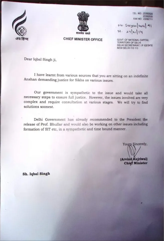 ਦਿੱਲੀ ਸਰਕਾਰ ਨੇ ਭਾਈ ਭੁੱਲਰ ਦੀ ਰਿਹਾਈ ਮਤੇ ਨੂੰ ਠੁਕਰਾਇਆ - ਸਿੱਖ ਕੈਦੀ ਰਿਹਾਈ ਮੋਰਚਾ