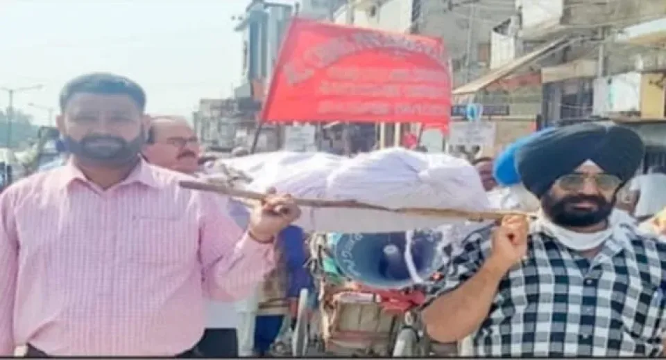 ਭੋਗਪੁਰ 12 ਅਕਤੂਬਰ (ਸੁਖਵਿੰਦਰ ਜੰਡੀਰ )ਪੰਜਾਬ ਮੁਲਾਜਮ ਅਤੇ ਪੈਂਸਨਰਾਂ ਅਤੇ ਯੂ ਟੀ ਇੰਪਲਾਈਜ਼ ਦੇ ਸੱਦੇ ਤੇ ਭੋਗਪੁਰ ਮੰਡਲ ਦਫ਼ਤਰ ਦੇ ਸਾਹਮਣੇ ਜ਼ੋਰਦਾਰ ਮੁਜ਼ਾਹਰਾ ਕੀਤਾ ਗਿਆ ਜੋਕੇ ਪੰਜਾਬ ਦੇ ਮੁੱਖ ਮੰਤਰੀ ਚਰਨਜੀਤ ਸਿੰਘ ਚੰਨੀ ਵੱਲੋਂ ਮੁਲਾਜ਼ਮਾਂ ਦੇ 6 ਵੇਂ ਪੇ ਕਮਿਸ਼ਨ ਰਿਪੋਰਟ ਜਾਰੀ ਕੀਤੀ ਸੀ ਉਸਨੂੰ ਦੁਬਾਰਾ ਜਾਰੀ ਕਰਕੇ ਮੁਲਾਜ਼ਮਾਂ ਨਾਲ ਧੱਕਾ ਕੀਤਾ ਗਿਆ ਮੁੱਖ ਮੰਤਰੀ ਪੰਜਾਬ ਨੇ ਨੋਟੀਫਿਕੇਸ਼ਨ ਜਾਰੀ ਕਰਕੇ ਮੁਲਾਜ਼ਮਾਂ ਤੇ ਪੈਨਸ਼ਨਰਾਂ ਦੇ ਰੋਹ ਨੂੰ ਹੋਰ ਤਿੱਖਾ ਕਰ ਦਿੱਤਾ ਹੈ, 1 ਜਨਵਰੀ 2016 ਤੋਂ ਲੈ ਕੇ 30 ਜੂਨ ਤੋਂ ਲੈ ਕੇ 2021ਤੱਕ ਕੋਈ ਵੀ ਬਕਾਇਆ ਨਹੀਂ ਦਿੱਤਾ ਗਿਆ ਡੀ ਏ ਕਿਸ਼ਤ ਦਾ ਬਕਾਇਆ 52 ਹਫ਼ਤਿਆਂ ਤੋਂ ਵੀ ਜ਼ਿਆਦਾ ਹੋ ਗਿਆ ਹੈ ਤਕਰੀਬਨ 65 ਹਫਤਿਆਂ ਦਾ ਬਕਾਇਆ ਨਹੀਂ ਦਿੱਤਾ ਜਾਵੇਗਾ ਸਰਕਾਰ ਵੱਲੋਂ ਜੋ ਨੋਟੀਫਿਕੇਸ਼ਨ ਜਾਰੀ ਕੀਤਾ ਗਿਆ ਹੈ 1 ਜਨਵਰੀ 2015 ਨੂੰ ਆਧਾਰ ਮੰਨ ਕੇ 113 ਡੀ ਏ ਬਿਨਕ ਤਨਖਾਹ ਜਮਾਂ ਕਰਕੇ ਅਤੇ ਉਨ੍ਹਾਂ ਉਤੇ 15% ਦਾ ਪਤਾ ਦਿੱਤਾ ਗਿਆ ਹੈ, ਉਹ ਇਸ ਤਰ੍ਹਾਂ ਹੈ ਜੇਕਰ 1 ਜਨਵਰੀ 2015 ਨੂੰ ੳਧਾਰ ਮਨ ਸਕੇ ਤਾਂ ਮੁਲਾਜ਼ਮਾਂ ਅਤੇ ਪੈਨਸ਼ਨਰਾਂ ਨੂੰ 2 % ਤਨਖਾਹ ਅਤੇ ਪੈਨਸ਼ਨ ਘਟਦੀਆਂ ਹਨ, ਕਿਉਂਕਿ 113 % + 15% ਵਾਪਸ 128 % ਵਾਧਾ ਜਦ ਕਿ 1 ਜਨਵਰੀ 2016 ਨੂੰ ਡੀਏ 125% ਹੈ ਅਤੇ 1 ਜਨਵਰੀ 2017 ਤੋਂ 5 % ਅੰਤ ਰਿਹਾ ਰਿਲੀਫ ਇਸ ਵਿਚੋਂ ਵਿੱਚ ਕੱਟ ਹੈ ਕਿਉਂਕਿ 1 ਜਨਵਰੀ 2015 ਨੂੰ ਆਧਾਰ ਮੰਨ ਕੇ ਟਿਲੇ ਸਕੇਲਾਂ ਨਾਲ 2% ਤਨਖਾਹ 1ਪੈਂਸਪਰਾਂ ਘੱਟ ਦੀਆਂ ਸੀ 113 + 5% 128% 1 ਜਨਵਰੀ 2017 ਤੋਂ5% ਜਦ ਕਿ 1 ਜਨਵਰੀ 2016 ਤੋਂ ਡੀਏ125%20% ਵਾਧਾ ਕੀਤਾ ਜਾਵੇ 1 ਜਨਵਰੀ 2017 ਤੋਂ5% ਵਾਪਸ ਅੰਤਰਿਮ ਰਿਲੀਫ ਦਾ ਕਲ ਵਾਪਸ ਸਨ ਇਸ ਲਈ ਅਸੀਂ ਇੱਕ ਜਨਵਰੀ 2016 ਨੂੰ ਆਧਾਰ ਮੰਨਦੇ ਹੋਏ 20% ਵਾਧਾ ਮੰਗਦੇ ਹਾਂ ਇਸ ਨਾਲ 2.59 ਫਾਰਮੂਲਾ ਬਣਦਾ ਬਣਦਾ ਹੈ