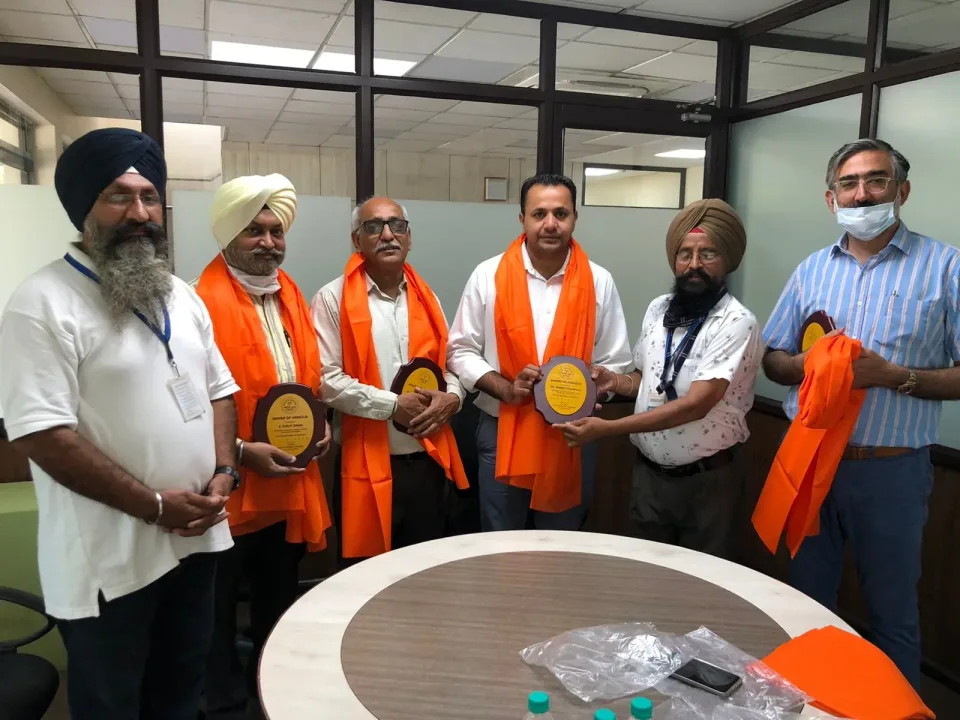 ਕਰਤਾਰਪੁਰ 1 ਸਤੰਬਰ (ਭੁਪਿੰਦਰ ਸਿੰਘ ਮਾਹੀ): ਸਮਾਜਸੇਵੀ ਸੰਸਥਾ ਨੇਕੀ ਦੀ ਦੁਕਾਨ , ਕਰਤਾਰਪੁਰ ਰਾਹੀਂ ਵੱਖ ਵੱਖ ਸਰਕਾਰੀ ਸਕੂਲਾਂ ਨੂੰ ਫਰਨੀਚਰ ਦੇਣ ਵਾਲੇ ਹਿੰਦੋਸਤਾਨ ਹਾਈਡ੍ਰੋਲਿਕਸ ਪ੍ਰਾਈਵੇਟ ਲਿਮਟਿਡ, ਸੂਰਾਨੁੱਸੀ (ਜਲੰਧਰ) ਦਾ ਧੰਨਵਾਦ ਕੀਤਾ ਗਿਆ ਅਤੇ ਕੰਪਨੀ ਦੇ ਮੈਨੇਜਿੰਗ ਡਾਈਰੈਕਟਰ ਸ਼੍ਰੀ ਸੁਨੀਲ ਖੋਸਲਾ, ਸ਼੍ਰੀ ਰਾਜੇਸ਼ ਚੌਧਰੀ, ਨਗਿੰਦਰ ਨਾਥ ਫੁੱਲ ਅਤੇ ਸ. ਸੁਰਜੀਤ ਸਿੰਘ ਨੂੰ ਸਮਾਜਸੇਵੀ ਸੰਸਥਾ ਨੇਕੀ ਦੀ ਦੁਕਾਨ ਕਰਤਾਰਪੁਰ ਵੱਲੋਂ ਸਨਮਾਨਿਤ ਕੀਤਾ ਗਿਆ। ਸੰਸਥਾ ਵੱਲੋਂ ਸ਼੍ਰੀ ਸੁਨੀਲ ਖੋਸਲਾ ਜੀ ਵੱਲੋਂ ਕੀਤੇ ਜਾ ਰਹੇ ਭਲਾਈ ਦੇ ਕੰਮਾਂ ਦੀ ਭਰਪੂਰ ਸ਼ਲਾਘਾ ਕੀਤੀ ਗਈ। ਇਸ ਮੌਕੇ ਸੰਸਥਾ ਦੇ ਮਾਸਟਰ ਅਮਰੀਕ ਸਿੰਘ, ਭੁਪਿੰਦਰ ਸਿੰਘ ਮਾਹੀ, ਭਾਈ ਸੁਖਵੀਰ ਸਿੰਘ ਜੀ ਕਰਤਾਰਪੁਰ ਵਾਲੇ ਹਾਜ਼ਰ ਸਨ।