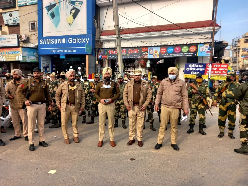 ਡੀ ਐਸ ਪੀ ਸ਼ਮਸ਼ੇਰ ਸਿੰਘ ਸ਼ੇਰਗਿੱਲ ਦੀ ਅਗਵਾਈ 'ਚ ਪੁਲਿਸ ਨੇ ਕੱਢਿਆ ਫਲੈਗ ਮਾਰਚ