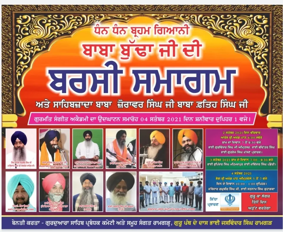 ਬਾਬਾ ਬੁੱਢਾ ਜੀ ਨੂੰ ਸਮਰਪਿਤ ਗੁਰਮਤਿ ਸਮਾਗਮ ਅਤੇ ਬਾਬਾ ਜ਼ੋਰਾਵਰ ਸਿੰਘ, ਬਾਬਾ ਫਤਿਹ ਸਿੰਘ ਜੀ ਗੁਰਮਤਿ ਸੰਗੀਤ ਅਕੈਡਮੀ ਦਾ ਉਤਘਾਟਨ 4 ਸਤੰਬਰ ਨੂੰ
