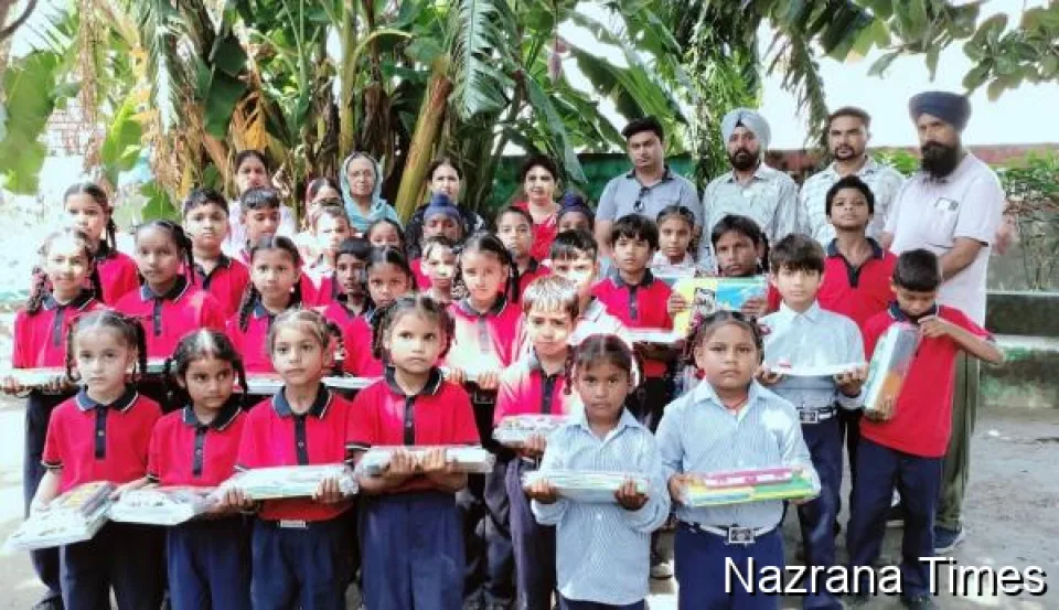 ਰਾਜ ਭਨੋਟ ਅਤੇ ਨੇਕਾਂ ਸ਼ਰਮਾ ਆਸਟਰੇਲੀਆ ਵੱਲੋਂ ਆਪਣੀ ਬੇਟੀ ਦੇ ਜਨਮ ਦਿਨ ਮੌਕੇ ਬੱਚਿਆਂ ਨੂੰ ਕਾਪੀਆਂ ਕਿਤਾਬਾਂ ਵੰਡੀਆਂ।