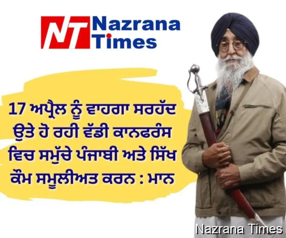 17 ਅਪ੍ਰੈਲ ਨੂੰ ਵਾਹਗਾ ਸਰਹੱਦ ਉਤੇ ਹੋ ਰਹੀ ਵੱਡੀ ਕਾਨਫਰੰਸ ਵਿਚ ਸਮੁੱਚੇ ਪੰਜਾਬੀ ਅਤੇ ਸਿੱਖ ਕੌਮ ਸਮੂਲੀਅਤ ਕਰਨ : ਮਾਨ