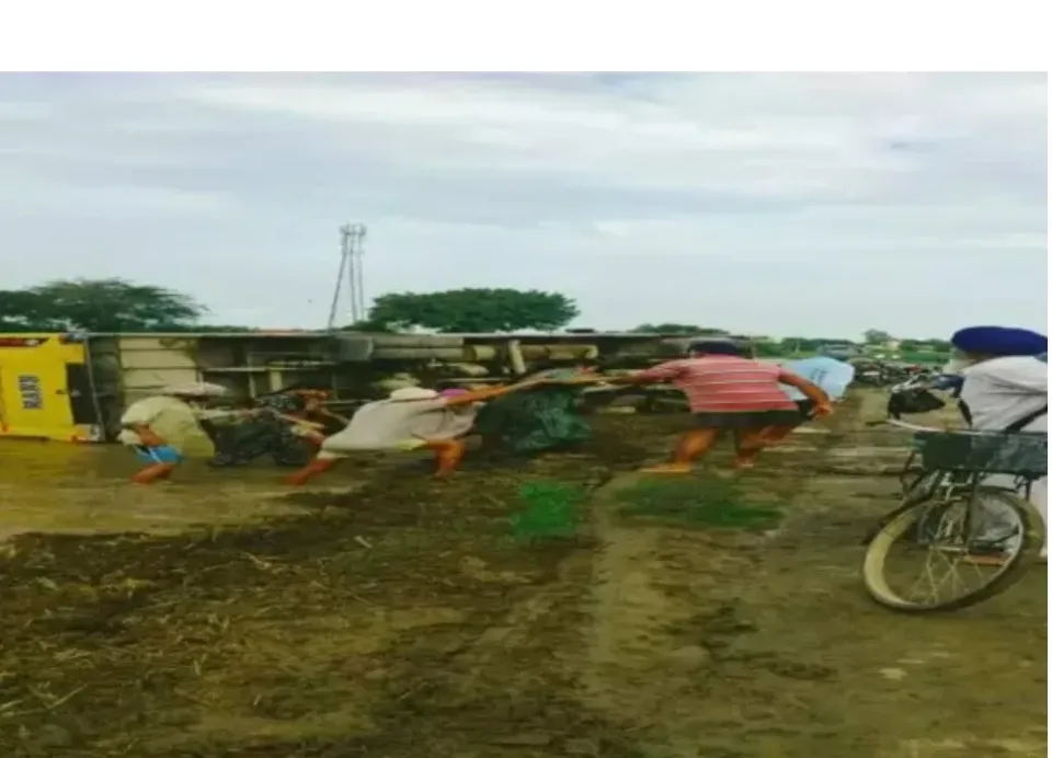 ਬੱਸ ਪਲਟੀ ਪਿੰਡ ਵਾਸੀਆਂ ਨੇ ਸ਼ੀਸ਼ੇ ਤੋੜ ਕੇ 20 ਸਵਾਰੀਆਂ ਨੂੰ ਬਾਹਰ ਕੱਢਿਆ