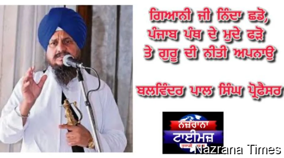 ਗਿਆਨੀ ਜੀ ਨਿੰਦਾ ਛਡੋ,ਪੰਜਾਬ ਪੰਥ ਦੇ ਮੁਦੇ ਫੜੋ ਤੇ ਗੁਰੂ ਦੀ ਨੀਤੀ ਅਪਨਾਉ- ਬਲਵਿੰਦਰ ਪਾਲ ਸਿੰਘ ਪ੍ਰੋਫੈਸਰ