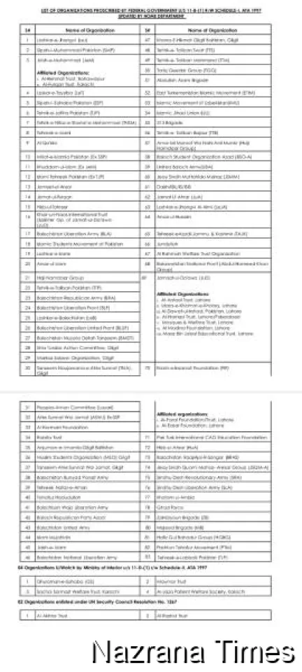 ਪੂਰੀ ਸੂਚੀ ਪੰਜਾਬ ਗ੍ਰਹਿ ਵਿਭਾਗ ਅਤੇ ਨੈਸ਼ਨਲ ਕਾਊਂਟਰ ਟੈਰਰਿਜ਼ਮ ਅਥਾਰਟੀ (NACTA) ਦੀਆਂ ਅਧਿਕਾਰਕ ਵੈਬਸਾਈਟਾਂ ’ਤੇ ਉਪਲਬਧ ਹੈ।