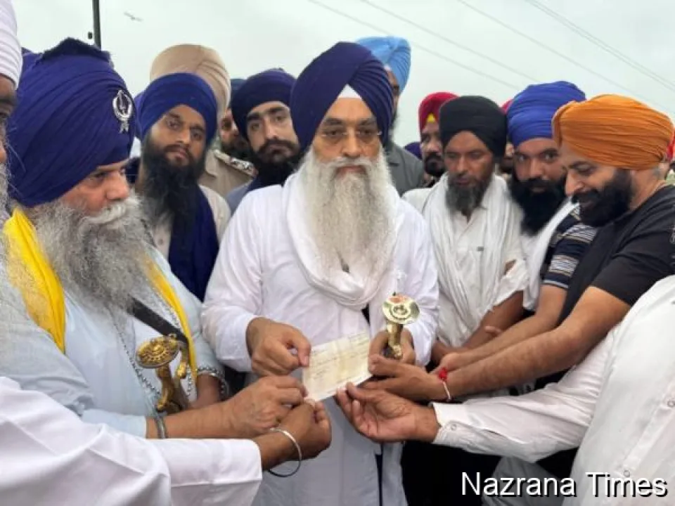 ਗਿਆਨੀ ਰਘਬੀਰ ਸਿੰਘ ਅਤੇ ਨਿਹੰਗ ਮੁਖੀ ਬਾਬਾ ਬਲਬੀਰ ਸਿੰਘ ਵੱਲੋਂ ਪਿੰਡ ਲੱਖੂਵਾਲ ਦੀ ਪੰਚਾਇਤ ਨੂੰ ਨਗਦ ਰਾਸ਼ੀ ਭੇਟ
