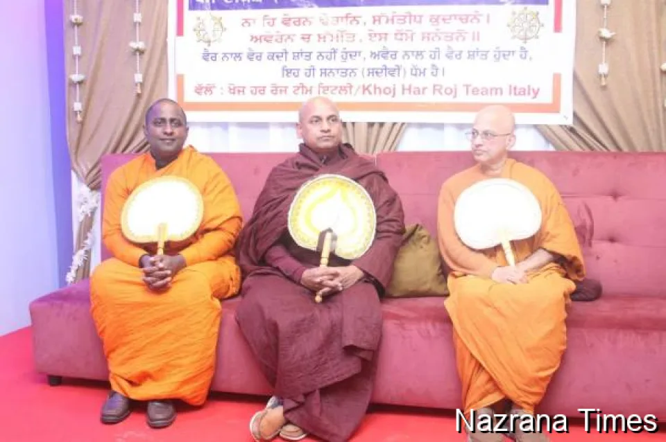 ਸਨਮਾਨਤ ਭੰਤੇ ਰੇਵਤ (ਯੂ ਕੇ ), ਭੰਤੇ ਪਿਆਦਸੀ ਥੇਰੋ ( ਇਟਲੀ) ਅਤੇ ਭੰਤੇ ਨੰਦਾ ਥੇਰੋ ( ਇਟਲੀ) ਜੀ ਤੋਂ ਇਲਾਵਾ, ਆਏ ਹੋਏ ਮਹਿਮਾਨਾਂ ਵਿੱਚੋਂ ਧੱਮ ਉਪਾਸਕ ਦੇਵ ਲਾਲ ਸੁਮਨ ਪ੍ਰੈਜ਼ੀਡੈਂਟ ਆਫ ਅੰਬੇਡਕਰ ਮੈਮੋਰੀਅਲ ਕਮੇਟੀ ਗ੍ਰੇਟ ਬ੍ਰਿਟੇਨ ਜੀ ਨੇ ਬੜੇ ਹੀ ਵਿਸਥਾਰ ਨਾਲ ਬੁੱਧ ਬੰਦਨਾ ਅਤੇ ਗਾਥਾ ਦੀ ਪੰਜਾਬੀ ਵਿਚ ਵਿਆਖਿਆ ਕੀਤੀ |ਧੱਮ ਉਪਾਸਿਕਾ ਅੰਜਨਾ ਕੁਮਾਰੀ ( ਯੂ ਕੇ ) ਨੇ ਇਕ ਸਾਇੰਸ ਫਿੰਕਸ਼ਨ ਦੀ ਕਹਾਣੀ ਕਿਸ ਤਰ੍ਹਾਂ ਅੰਧ ਵਿਸ਼ਵਾਸ਼ ਲਈ ਇਕ ਸਬੂਤ ਬਣ ਗਈ , ਅੰਧਵਿਸ਼ਵਾਸੀ ਲੋਕਾਂ ਲਈ ਇਕ ਬਹੁਤ ਵਧੀਆ ਉਦਾਹਰਣ ਦਿੱਤੀ।ਧੱਮ ਉਪਾਸਿਕਾ ਚੰਚਲ ਮੱਲ ਕੈਨੇਡਾ ਤੋਂ ਉਨ੍ਹਾਂ ਖੋਜ ਹਰ ਰੋਜ ਟੀਮ ਦੀ ਇਸ ਸਮਾਗਮ ਲਈ ਬਹੁਤ ਸ਼ਲਾਘਾ ਕੀਤੀ ਤੇ ਭਵਿੱਖ ਵਿਚ ਵੀ ਇਸ ਤਰ੍ਹਾਂ ਦੇ ਸਮਾਗਮ ਕਰਨ ਦੀ ਆਸ ਕੀਤੀ ਅਤੇ ਪੂਰਾ ਸਾਥ ਦੇਣ ਦਾ ਵਾਦਾ ਕੀਤਾ । ਹਾਜ਼ਰੀਨ ਲੋਕਾਂ ਨੇ ਬਾਬਾ ਸਾਹਿਬ ਅੰਬੇਡਕਰ ਜੀ ਦੇ ਨਾਮ ਤੇ ਜੋ ਇਟਲੀ ਵਿੱਚ ਭਵਨ ਬਣਨ ਜਾ ਰਿਹਾ ਹੈ ਉਸ ਵਿੱਚ ਮਾਲੀ ਯੋਗਦਾਨ ਵੀ ਦਿੱਤਾ |ਧੱਮ ਉਪਾਸਿਕ ਬਲਵਿੰਦਰ ਢੰਡਾ ਆਸਟਰੀਆ ਨੇ ਵੀ ਖੋਜ ਹਰ ਰੋਜ ਟੀਮ ਨੂੰ ਵਧਾਈਆਂ ਦਿੱਤੀਆਂ ਜਿਹਨਾਂ ਧੱਮ ਦੀਕਸ਼ਾ ਉਲੀਕਿਆ ।