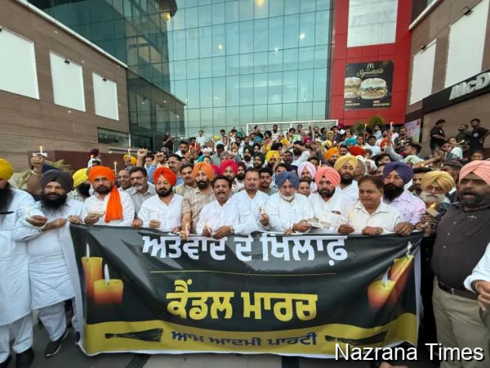 ਪਟਿਆਲਾ ਜ਼ਿਲ੍ਹੇ ਦੇ ਵਿਧਾਇਕਾਂ ਤੇ ਆਮ ਆਦਮੀ ਪਾਰਟੀ ਦੇ ਆਗੂਆਂ ਨੇ ਪਹਿਲਗਾਮ ਅੱਤਵਾਦੀ ਹਮਲੇ ਦੀ ਨਿੰਦਾ ਕਰਦਿਆਂ ਕੈਂਡਲ ਮਾਰਚ ਕੀਤਾ