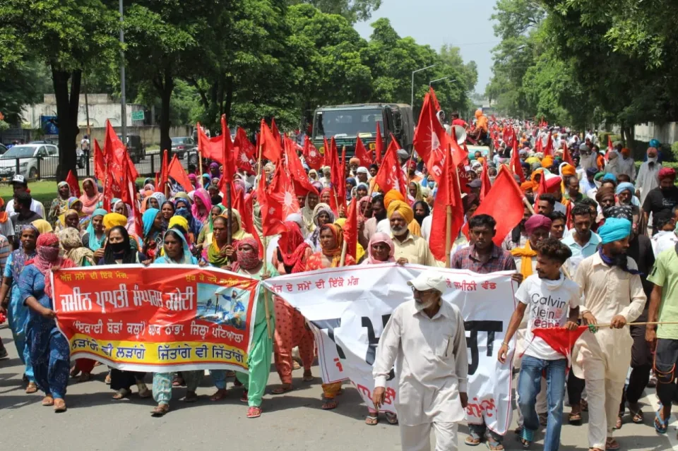 uਪਟਿਆਲਾ 13 ਅਗਸਤ (ਭੁਪਿੰਦਰ ਸਿੰਘ ਮਾਹੀ) - ਜ਼ਮੀਨ ਪ੍ਰਾਪਤੀ ਸੰਘਰਸ਼ ਕਮੇਟੀ ਦੀ ਅਗਵਾਈ ਹੇਠ ਹਜ਼ਾਰਾਂ ਬੇਜ਼ਮੀਨੇ ਲੋਕਾਂ ਵੱਲੋਂ ਸ਼ਾਹੀ ਸ਼ਹਿਰ ਪਟਿਆਲਾ ਦੇ ਫੁਹਾਰਾ ਚੌਂਕ ਤੋਂ ਇਕੱਠੇ ਹੋ ਕੇ ਮੁੱਖ ਮੰਤਰੀ ਦੀ ਰਿਹਾਇਸ਼ ਮੋਤੀ ਮਹਿਲ ਵੱਲ ਮਾਰਚ ਕੀਤਾ ਗਿਆ। ਤਪਦੀ ਸੜਕ ਉੱਪਰ ਕਈ ਘੰਟੇ ਬੈਠੇ ਮੁਜ਼ਾਹਰਾਕਾਰੀਆਂ ਨੇ ਮੋਤੀ ਮਹਿਲਾਂ ਵੱਲ ਜਾਂਦੀ ਆਵਾਜਾਈ ਨੂੰ ਪੂਰੀ ਤਰ੍ਹਾਂ ਜਾਮ ਰੱਖਿਆ ਗਿਆ। ਇਸ ਦਰਮਿਆਨ ਸਰਕਾਰ ਦੇ ਨੁਮਾਇੰਦਿਆਂ ਨਾਲ ਗੱਲਬਾਤ ਦੇ ਕਈ ਦੌਰ ਚੱਲੇ। ਮਜ਼ਦੂਰ ਇਸ ਗੱਲ ਉਪਰ ਅੜੇ ਰਹੇ ਕਿ ਉਨ੍ਹਾਂ ਦੀਆਂ ਮੰਗਾਂ ਦੇ ਹੱਲ ਲਈ ਸਰਕਾਰ ਇਸ ਮੌਕੇ ਉੱਪਰ ਕੋਈ ਐਲਾਨ ਕਰੇ।ਜਿਸ ਦੇ ਚੱਲਦਿਆਂ ਸਹਿਕਾਰੀ ਸਭਾਵਾਂ ਦੇ ਜ਼ੋਨਲ ਰਜਿਸਟਰਾਰ ਨੇ ਧਰਨਾਕਾਰੀਆਂ ਵਿੱਚ ਆ ਕੇ ਦਲਿਤਾਂ ਅਤੇ ਬੇਜ਼ਮੀਨੇ ਲੋਕਾਂ ਨੂੰ ਬਿਨਾ ਸ਼ਰਤ ਸਹਿਕਾਰੀ ਸਭਾਵਾਂ ਦੇ ਮੈਂਬਰ ਬਣਾਉਣ ਦਾ ਮੌਕੇ ਤੇ ਐਲਾਨ ਕਰਦਿਆਂ ਇਸ ਦਾ ਲਿਖਤੀ ਪੱਤਰ ਆਗੂਆਂ ਨੂੰ ਸੌੰਪਿਆ। ਇਸ ਦੇ ਉੱਪਰ ਜ਼ਮੀਨ ਪ੍ਰਾਪਤੀ ਸੰਘਰਸ਼ ਕਮੇਟੀ ਦੇ ਜੋਨਲ ਪ੍ਰਧਾਨ ਮੁਕੇਸ਼ ਮਲੌਦ ਨੇ ਕਿਹਾ ਕਿ ਸਹਿਕਾਰੀ ਸਭਾਵਾਂ ਦੇ ਮੈਂਬਰ ਬਣਨ ਨਾਲ ਜਿੱਥੇ ਦਲਿਤ ਅਤੇ ਬੇਜ਼ਮੀਨੇ ਲੋਕ ਮਾਈਕ੍ਰੋਫਾਇਨਾਂਸ ਕੰਪਨੀਆਂ ਦੀ ਕੀਤੀ ਜਾ ਰਹੀ ਲੁੱਟ ਦੇ ਚੁੰਗਲ ਵਿੱਚੋਂ ਬਾਹਰ ਆਉਣਗੇ ਉਥੇ ਦਲਿਤ ਸਵੈਮਾਣ ਦੀ ਵੀ ਜਿੱਤ ਹੋਈ ਹੈ। ਕਿਉਂਕਿ ਉਨ੍ਹਾਂ ਨੂੰ ਉਨ੍ਹਾਂ ਦੀ ਜਾਤ ਕਾਰਨ ਹੀ ਮੈਂਬਰ ਨਹੀਂ ਬਣਾਇਆ ਜਾਂਦਾ ਸੀ। ਇਸ ਮੌਕੇ ਜ਼ਮੀਨ ਪ੍ਰਾਪਤੀ ਸੰਘਰਸ਼ ਕਮੇਟੀ ਦੀ ਜ਼ੋਨਲ ਸਕੱਤਰ ਪਰਮਜੀਤ ਕੌਰ ਲੌਂਗੋਵਾਲ ਅਤੇ ਪੇਂਡੂ ਮਜ਼ਦੂਰ ਯੂਨੀਅਨ ਪੰਜਾਬ ਦੇ ਪ੍ਰਧਾਨ ਤਰਸੇਮ ਪੀਟਰ ਨੇ ਲੋਕਾਂ ਨੂੰ ਸੰਬੋਧਨ ਕਰਦਿਆਂ ਕਿਹਾ ਕਿ ਪੰਚਾਇਤੀ ਜ਼ਮੀਨਾਂ ਵਿੱਚੋਂ ਦਲਿਤਾਂ ਨੂੰ ਆਪਣੇ ਹਿੱਸੇ ਦੀ ਜ਼ਮੀਨ ਲੈਣ ਲਈ ਹਰ ਸਾਲ ਝੂਠੇ ਪਰਚਿਆਂ ਅਤੇ ਕੁੱਟਮਾਰ ਦਾ ਸਾਹਮਣਾ ਕਰਨਾ ਪੈਂਦਾ ਹੈ ਨਜ਼ੂਲ ਸੁਸਾਇਟੀ ਦੀਆਂ ਜ਼ਮੀਨਾਂ ਦੇ ਸਾਰੇ ਪੈਸੇ ਸਰਕਾਰ ਨੂੰ ਭਰਨ ਤੋਂ ਬਾਅਦ ਵੀ ਮਾਲਕੀ ਹੱਕ ਲੈਣ ਲਈ 30 ਫ਼ੀਸਦੀ ਪੈਸੇ ਭਰਨ ਦੀ ਸ਼ਰਤ ਲਗਾਈ ਗਈ ਹੈ, ਲੋੜਵੰਦ ਪਰਿਵਾਰਾਂ ਨੂੰ ਪੰਜ ਪੰਜ ਮਰਲੇ ਪਲਾਟ ਦੇਣ ਦਾ ਵਾਅਦਾ ਕਰਨ ਤੋਂ ਬਾਅਦ ਵੀ ਸੱਤਾ ਵਿੱਚ ਆਈ ਸਰਕਾਰ ਨੇ ਉਨ੍ਹਾਂ ਨੂੰ ਪਲਾਟ ਦੇਣ ਤੋਂ ਟਾਲਾ ਵੱਟਿਆ ਹੈ। ਭੂਮੀ ਸੁਧਾਰ ਕਾਨੂੰਨ ਨੂੰ ਲਾਗੂ ਕਰਨ ਦੀ ਬਜਾਏ ਉਸ ਨੂੰ ਮਜ਼ਬੂਤ ਕਰਨ ਵਾਲੇ ਪਾਸੇ ਕਦਮ ਵਧਾਏ ਹਨ।ਲਾਲ ਲਕੀਰ ਅੰਦਰ ਆਉਂਦੇ ਮਕਾਨਾਂ ਦੇ ਮਾਲਕੀ ਹੱਕ ਨੂੰ ਕੈਬਨਿਟ ਵਿੱਚ ਪਾਸ ਕਰਨ ਤੋਂ ਬਾਅਦ ਵੀ ਥੱਲੇ ਲਾਗੂ ਨਹੀਂ ਕੀਤਾ ਗਿਆ। ਇਨ੍ਹਾਂ ਮੰਗਾਂ ਨੂੰ ਲਾਗੂ ਕਰਵਾਉਣ ਲਈ ਹਜ਼ਾਰਾਂ ਦੀ ਗਿਣਤੀ ਵਿਚ ਆਏ ਦਲਿਤਾਂ ਵੱਲੋਂ ਪੰਜਾਬ ਸਰਕਾਰ ਖਿਲਾਫ ਜ਼ੋਰਦਾਰ ਨਾਅਰੇਬਾਜ਼ੀ ਕੀਤੀ ਗਈ ਅਤੇ ਬੈਰੀਕੇਡ ਤੋੜ ਕੇ ਅੱਗੇ ਵਧਣ ਦੀ ਧਮਕੀ ਦੇਣ ਤੋਂ ਬਾਅਦ ਪ੍ਰਸ਼ਾਸਨ ਨੇ ਸਹਿਕਾਰੀ ਸਭਾਵਾਂ ਵਿੱਚ ਮੈਂਬਰ ਬਣਾਉਣ ਦਾ ਮੌਕੇ ਤੇ ਲਿਖਤੀ ਪੱਤਰ ਜਾਰੀ ਕੀਤਾ ਅਤੇ ਇਨ੍ਹਾਂ ਰਹਿੰਦੀਆਂ ਮੰਗਾਂ ਦੇ ਹੱਲ ਲਈ ਸੀਨੀਅਰ ਮੰਤਰੀ ਬ੍ਰਹਮ ਮਹਿੰਦਰਾ ਅਤੇ ਮੰਗਾਂ ਨਾਲ ਸਬੰਧਤ ਵਿਭਾਗ ਦੇ ਸਕੱਤਰਾਂ ਦੇ ਪੈਨਲ ਨਾਲ 18 ਅਗਸਤ ਨੂੰ ਮੀਟਿੰਗ ਕਰਵਾਉਣ ਦਾ ਲਿਖਤੀ ਪੱਤਰ ਦਿੱਤਾ। ਇਸ ਮੌਕੇ ਜ਼ਮੀਨ ਪ੍ਰਾਪਤੀ ਸੰਘਰਸ਼ ਕਮੇਟੀ ਤੇ ਜ਼ੋਨਲ ਵਿੱਤ ਸਕੱਤਰ ਬਿੱਕਰ ਸਿੰਘ ਹਥੋਆ ਜਸਵੰਤ ਸਿੰਘ ਖੇੜੀ,ਗੁਰਵਿੰਦਰ ਸਿੰਘ ਬੌੜਾਂ, ਧਰਮਪਾਲ ਨੂਰਖੇੜੀਆਂ, ਧਰਮਵੀਰ ਹਰੀਗਡ਼੍ਹ ਪ੍ਰਸਾਦ ਨੇ ਸੰਬੋਧਨ ਕਰਦਿਆਂ ਕਿਹਾ ਕਿ ਜੇਕਰ ਇਨ੍ਹਾਂ ਮੰਗਾਂ ਦਾ ਹੱਲ ਨਾ ਕੀਤਾ ਗਿਆ ਤਾਂ ਆਉਣ ਵਾਲੇ ਦਿਨਾਂ ਵਿੱਚ 