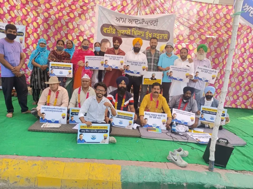ਕੈਬਨਿਟ ਮੰਤਰੀ ਸਾਧੂ ਸਿੰਘ ਧਰਮਸੋਤ ਵੱਲੋਂ ਕੀਤੇ ੬੫ ਕਰੋੜ ਵਜ਼ੀਫਾ ਘੁਟਾਲੇ ਦੇ ਖਿਲਾਫ ਆਪ ਵੱਲੋਂ ਭੁੱਖ ਹੜਤਾਲ ਸ਼ੁਰੂ