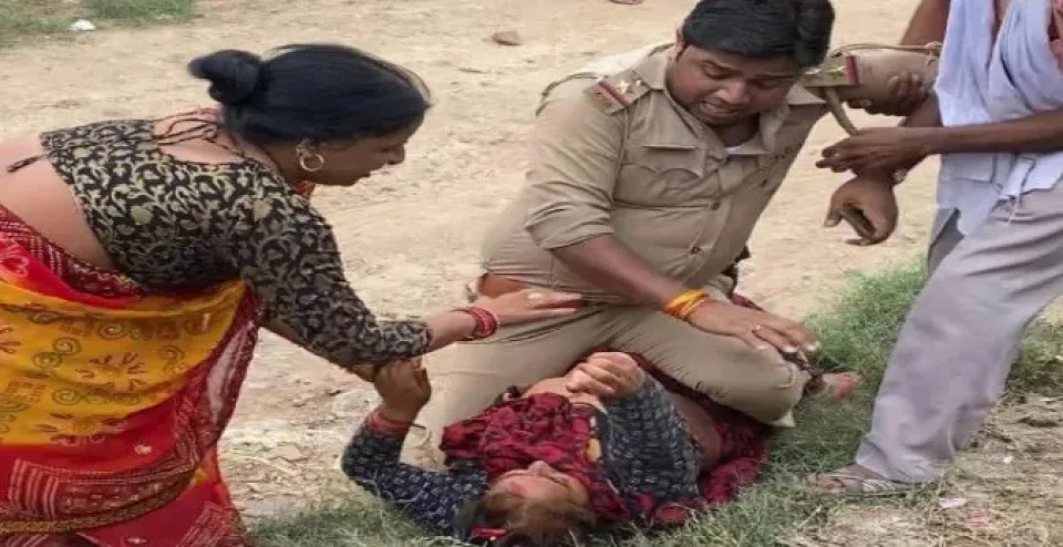 युवक को पिटते देख एक महिला उसे छुड़ाने के लिए आई तो पुलिसकर्मी उसे भी मारने लगे। इस पर महिला की बहू आरती दारोगा से भिड़ गई जिसपर दारोगा ने अपना आपा खो दिया और मर्यादा भूलते हुए महिला को जमीन पर गिराकर उसके सीने पर बैठ गए।