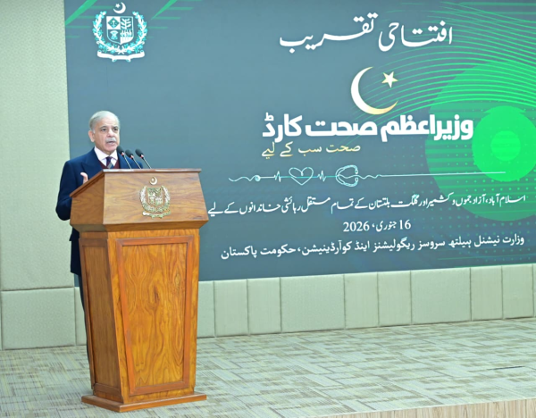 प्रधानमंत्री मुहम्मद शहबाज़ शरीफ़ ने शुक्रवार को इस्लामाबाद, आज़ाद जम्मू-कश्मीर और गिलगित-बल्तिस्तान के निवासियों के लिए प्रधानमंत्री स्वास्थ्य कार्ड कार्यक्रम का औपचारिक शुभारंभ किया। उन्होंने कहा कि समाज के कमजोर वर्गों की देखभाल करना राज्य की मूल जिम्मेदारी है और स्वास्थ्य सुविधाएँ हर नागरिक का बुनियादी अधिकार हैं।