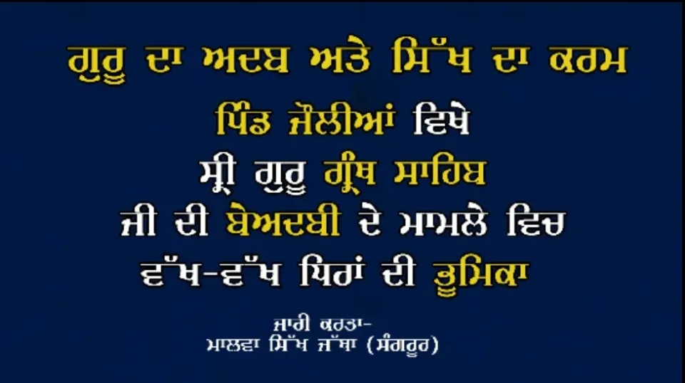 ਗੁਰੂ ਦਾ ਅਦਬ ਅਤੇ ਸਿੱਖ ਦਾ ਕਰਮ(ਪਿੰਡ ਜੌਲੀਆਂ ਵਿਖੇ ਸ੍ਰੀ ਗੁਰੂ ਗ੍ਰੰਥ ਸਾਹਿਬ ਜੀ ਦੀ ਬੇਅਦਬੀ ਦੇ ਮਾਮਲੇ ਵਿੱਚ ਵੱਖ-ਵੱਖ ਧਿਰਾਂ ਦੀ ਭੂਮਿਕਾ)