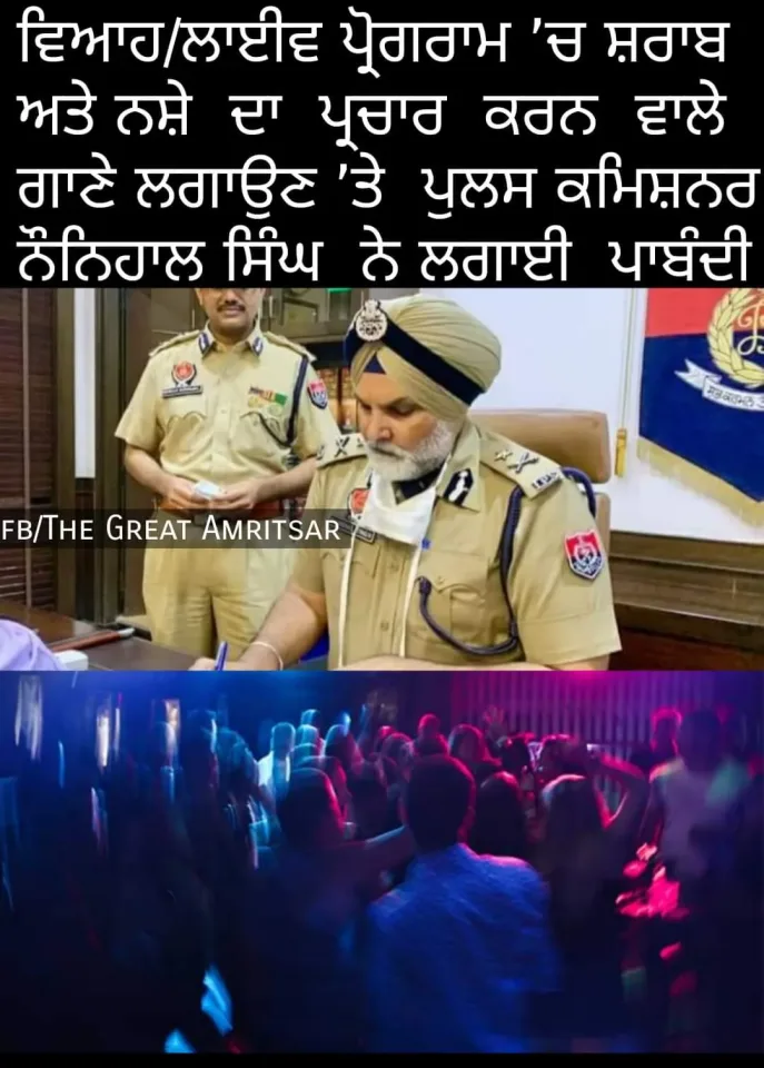 ਆਪਣੇ ਆਪ ਵਿੱਚ ਇੱਕ ਵਿਲੱਖਣ ਫੈਂਸਲਾ ਲੈਂਦੇ ਹੋਏ ਲੁਧਿਆਣਾ ਪੁਲਿਸ ਕਮਿਸ਼ਨਰ ਨੌਨਿਹਾਲ ਸਿੰਘ ਨੇ ਵਿਆਹ ਅਤੇ ਹੋਰ ਲਾਈਵ ਪ੍ਰੋਗਰਾਮ ’ਚ ਸ਼ਰਾਬ ਅਤੇ ਨਸ਼ੇ ਦਾ ਪ੍ਰਚਾਰ ਕਰਨ ਵਾਲੇ ਗਾਣੇ ਲਗਾਉਣ ’ਤੇ ਪਾਬੰਦੀ ਜਾਰੀ ਕੀਤੀ ਹੈ। ਜੇਕਰ ਸਮਾਰੋਹ ਵਿਚ ਇਸ ਤਰ੍ਹਾਂ ਦੇ ਗਾਣਿਆਂ ਨੂੰ ਚਲਾਇਆ ਗਿਆ ਤਾਂ ਕਾਰਵਾਈ ਹੋਵੇਗੀ।ਇਸ ਦੌਰਾਨ ਵਿਆਹ ਸਮਾਰੋਹ ਅਤੇ ਹੋਰ ਪ੍ਰੋਗਰਾਮਾਂ ਵਿਚ ਖੁੱਲ੍ਹੇਆਮ ਲਾਈਸੈਂਸੀ ਹਥਿਆਰ ਲੈ ਕੇ ਜਾਣਾ ਅਤੇ ਇਸਤੇਮਾਲ ਕਰਨ ’ਤੇ ਪਾਬੰਦੀ ਦੇ ਆਰਡਰ ਜਾਰੀ ਕੀਤੇ ਗਏ ਹਨ। ਪੁਲਸ ਕਮਿਸ਼ਨਰ ਦੇ ਆਰਡਰਾਂ ਦੀ ਉਲੰਘਣਾ ਕਰਨ ਵਾਲਿਆਂ ’ਤੇ ਕਾਰਵਾਈ ਕੀਤੀ ਜਾਵੇਗੀ।ਤੁਹਾਡਾ ਕੀ ਵਿਚਾਰ ਹੈ ਇਸ ਬਾਰੇ ਆਪਣੀ ਰਾਇ ਕਮੈਂਟ ਬਾਕਸ ਵਿੱਚ ਦਿਉLudhiana Police Commissioner banned those songs at wedding/parties which promote drugs and weapons. Strict action will be taken against violators. What is your opinion on this?#ludhiana #policecommissioner #ban #drug #weapon #songs