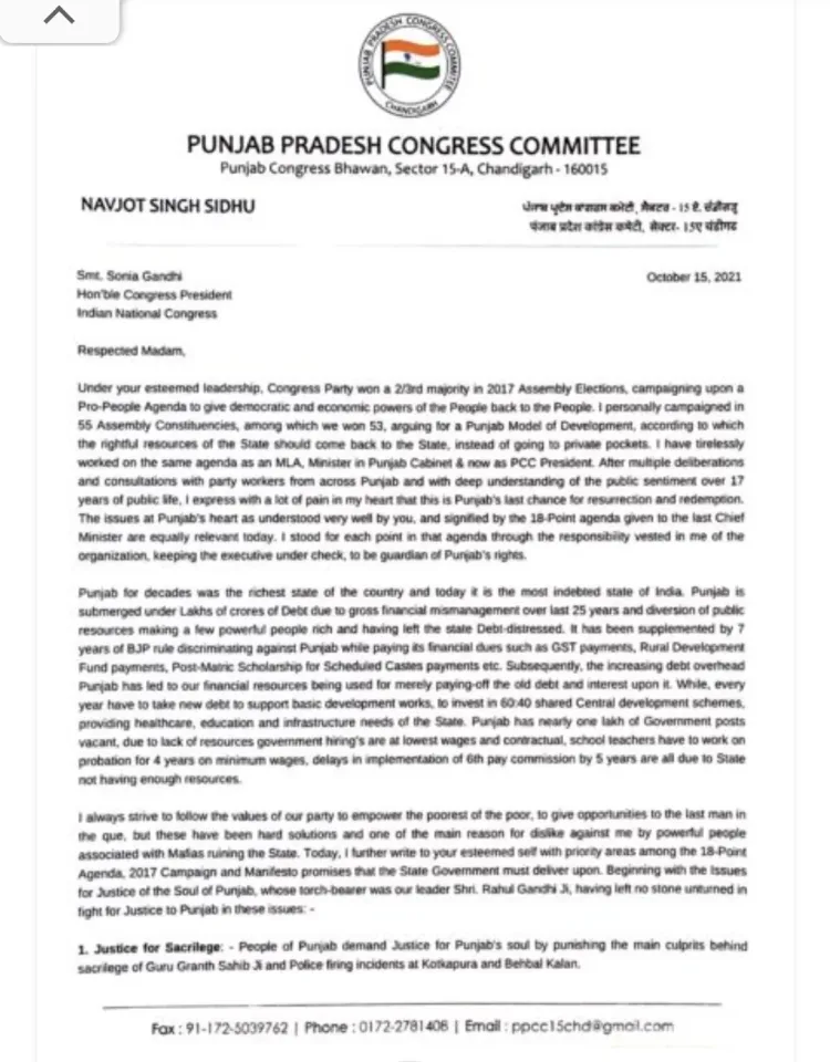 ਸਿੱਧੂ ਕਾਂਗਰਸ ਹਾਈਕਮਾਨ ਲਈ ਫਿਰ ਬਣੇ ਮੁਸੀਬਤ, ਸੋਨੀਆ ਗਾਂਧੀ ਨੂੰ 4 ਪੇਜਾਂ ਦੀ ਚਿੱਠੀ ਲਿੱਖਕੇ ਛਡਿਆ ਐਟਮਬੰਬ!