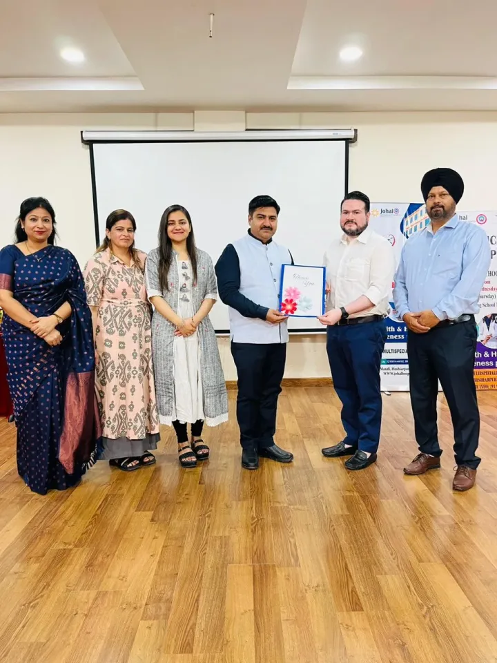 ਆਦਮਪੁਰ 24 ਮਈ ( ਮਨਪ੍ਰੀਤ ਕੌਰ ) "ਸਿਹਤਮੰਦ ਜੀਵਨ ਸਫਲਤਾ ਦੀ ਕੁੰਜੀ ਹੈ " ਇਸ ਗਲ ਨੂੰ ਧਿਆਨ ਵਿਚ ਰੱਖਦਿਆਂ ਸਥਾਨਕ ਦੀ ਇੰਪੀਰੀਅਲ ਸਕੂਲ ਸਿਟੀ ਕੈਂਪਸ ਵੱਲੋਂ ਆਪਣੇ ਵਿਦਿਆਰਥੀਆਂ ਲਈ ਵਿਸ਼ੇਸ਼ ਜਾਂਚ ਕੈਂਪ ਲਗਾਇਆ ਗਿਆ। ਸਕੂਲ ਦੀ ਮੈਨਜਮੈਂਟ ਕਮੇਟੀ ਦੇ ਚੇਅਰਮੈਨ ਜਗਦੀਸ਼ ਲਾਲ ਪਸਰੀਚਾ ਨੇ ਦਸਿਆ ਕਿ ਜੌਹਲ ਹਸਪਤਾਲ ਦੇ ਮਾਹਿਰ ਡਾਕਟਰਾਂ ਦੀ ਜਿਸ ਵਿਚ ਚਾਈਲਡ ਸਪੈਸ਼ਲਿਸਟ ਡਾ ਅਮਿਤ ਚੌਧਰੀ, ਡਾਇਟੀਸ਼ੀਅਨ ਮਿਸ ਦੀਪਿਕਾ, ਦੰਦਾਂ ਦੇ ਡਾਕਟਰ ਗੁਰਕ੍ਰਿਪਾਲ ਸਿੰਘ ਅਤੇ ਲਾਇਨਜ਼ ਆਈ ਹਸਪਤਾਲ ਤੋਂ ਅੱਖਾਂ ਦੇ ਮਾਹਿਰ ਡਾਕਟਰਾਂ ਦੀ ਟੀਮ ਨੇ ਵਿਦਿਆਰਥੀਆਂ ਦਾ ਨਿਰੀਖਣ ਕੀਤਾ। ਡਾਇਟੀਸ਼ੀਅਨ ਮਿਸ ਦੀਪਿਕਾ ਨੇ ਬੱਚਿਆਂ ਨੂੰ ਸਿਹਤਮੰਦ ਰਹਿਣ ਲਈ ਡਾਈਟ ਟਿਪਸ ਦਿੰਦਿਆਂ ਇਮਿਊਨਿਟੀ ਵਧਾਉਣ ਲਈ ਜੰਕ ਫੂਡ ਤੋਂ ਦੂਰ ਰਹਿਣ ਲਈ ਪ੍ਰੇਰਿਤ ਕੀਤਾ।ਸਕੂਲ ਡਾਇਰੈਕਟਰ ਜਗਮੋਹਨ ਅਰੋੜਾ,ਪ੍ਰਿੰਸੀਪਲ ਪੂਜਾ ਠਾਕੁਰ ਨੇ ਡਾਕਟਰਾਂ ਦੀ ਟੀਮ ਦਾ ਯਾਦਗਾਰੀ ਚਿੰਨ੍ਹ ਦੇ ਕੇ ਧੰਨਵਾਦ ਕੀਤਾ। ਇਸ ਮੌਕੇ ਲਾਇਨ ਰਘੁਵੀਰ ਸਿੰਘ ਵਿਰਦੀ,ਮਿਸ ਨਿਹਾਰਿਕਾ,ਦਿਸ਼ਾ ਅਰੋੜਾ ਮੌਜੂਦ ਸਨ।