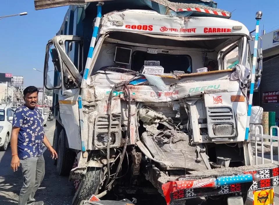 ਭੋਗਪੁਰ ਦੇ ਆਦਮਪੁਰ ਚੌਂਕ ਕੋਲ ਟਿੱਪਰ ਤੇ ਟਰੱਕ ਦਾ ਭਿਆਨਕ ਹਾਦਸਾ ਟਿੱਪਰ ਡਰਾਈਵਰ ਹੋਇਆ ਗੰਭੀਰ ਜ਼ਖ਼ਮੀ