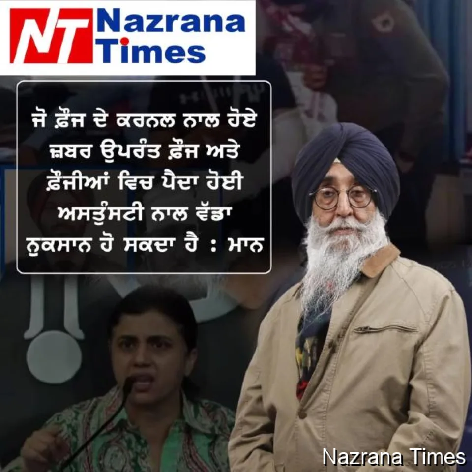 ਫ਼ੌਜ ਦੇ ਕਰਨਲ ਨਾਲ ਹੋਏ ਜ਼ਬਰ ਉਪਰੰਤ ਫ਼ੌਜ ਅਤੇ ਫ਼ੌਜੀਆਂ ਵਿਚ ਪੈਦਾ ਹੋਈ ਅਸਤੁੰਸਟੀ ਨਾਲ ਵੱਡਾ ਨੁਕਸਾਨ ਹੋ ਸਕਦਾ ਹੈ : ਮਾਨ