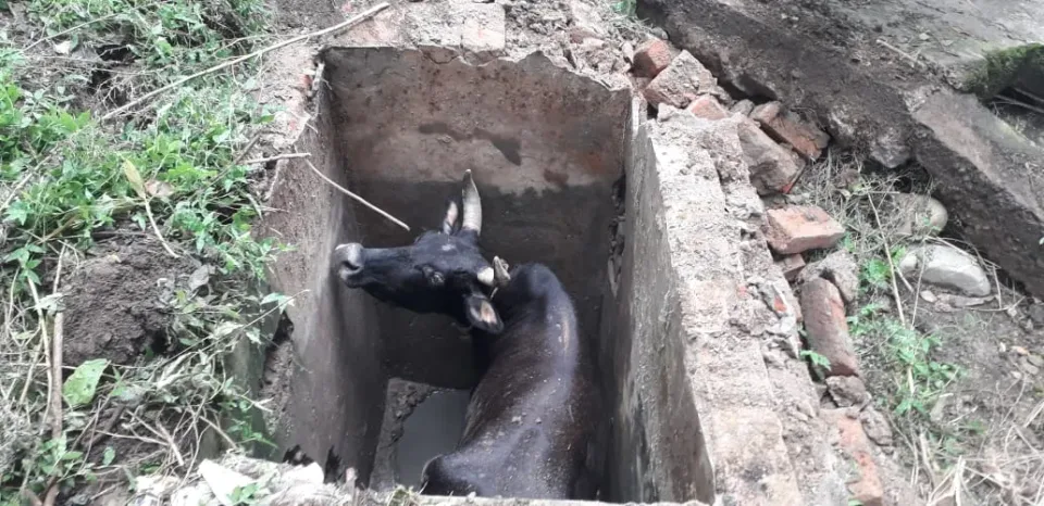 ਜੁਗਿਆਲ ਕਾਲੋਨੀ ਦੇ ਸੀਵਰੇਜ ਹੋਲ ਚ ਡਿੱਗੀ ਗਊ, ਆਰਐਸਡੀ ਯੂਥ ਕਲੱਬ ਨੇ ਬਚਾਈ ਜਾਨ