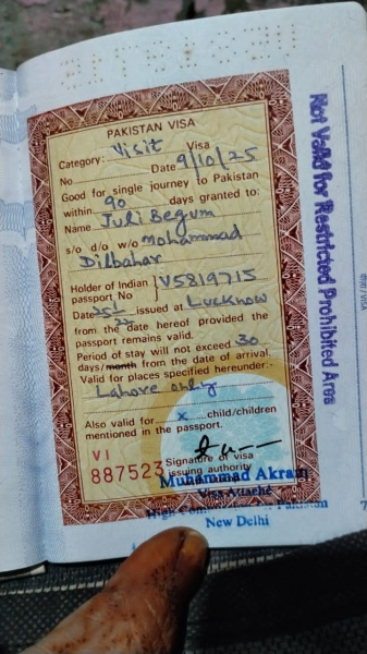 ਅਧਿਕਾਰਕ ਰਿਕਾਰਡ ਮੁਤਾਬਕ, 9 ਅਕਤੂਬਰ 2025 ਨੂੰ ਉਸਨੂੰ ਨਵੀਂ ਦਿੱਲੀ ਤੋਂ ਇਕੱਲੀ ਐਂਟਰੀ ਵਾਲਾ ਵਿਜ਼ਿਟ ਵੀਜ਼ਾ ਜਾਰੀ ਕੀਤਾ ਗਿਆ ਸੀ, ਜਿਸਦੀ ਮਿਆਦ 30 ਦਿਨ ਸੀ ਅਤੇ ਯਾਤਰਾ ਸਿਰਫ਼ ਲਾਹੌਰ ਤੱਕ ਸੀਮਿਤ ਸੀ।