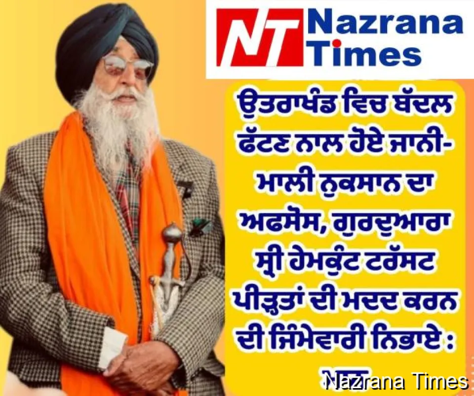 ਉਤਰਾਖੰਡ ਵਿਚ ਬੱਦਲ ਫੱਟਣ ਨਾਲ ਹੋਏ ਨੁਕਸਾਨ 'ਤੇ ਸਿੱਖ ਕੌਮ ਨੂੰ ਸਹਾਇਤਾ ਦੀ ਅਪੀਲ