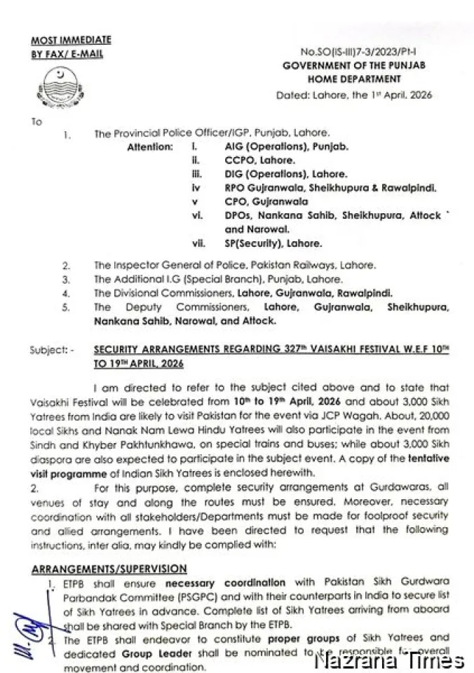 पंजाब गृह विभाग ने 327वें बैसाखी पर्व के लिए व्यापक सुरक्षा और आतिथ्य योजना की घोषणा की है। 10 से 19 अप्रैल 2026 तक आयोजित इस पर्व में हजारों सिख श्रद्धालु पंजाब के ऐतिहासिक गुरुद्वारों में पहुंचेंगे।