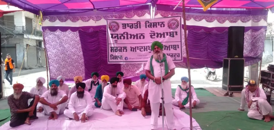 आदमपुर - (मनप्रीत कौर) भारतीय किसान यूनियन दोआबा सर्कल आदमपुर के बैनर तले आदमपुर पूरी तरह बंद रहा, वहीं इस धरने में श्रोमणि अकाली दल बादल ,श्रोमणि अकाली दल अमृतसर,कांग्रेस के नुमाइंदों को इलावा हल्के भर से किसानों के इलावा आम लोगों ने भी समर्थन देते हुए केंद्र सरकार के विरुद्ध किसानों के हक में अपनी हाज़री लगवाई।सुबह से लेकर शाम 5 बजे तक ट्रैफिक व मार्किट पूरी तरह से ठप रही ।