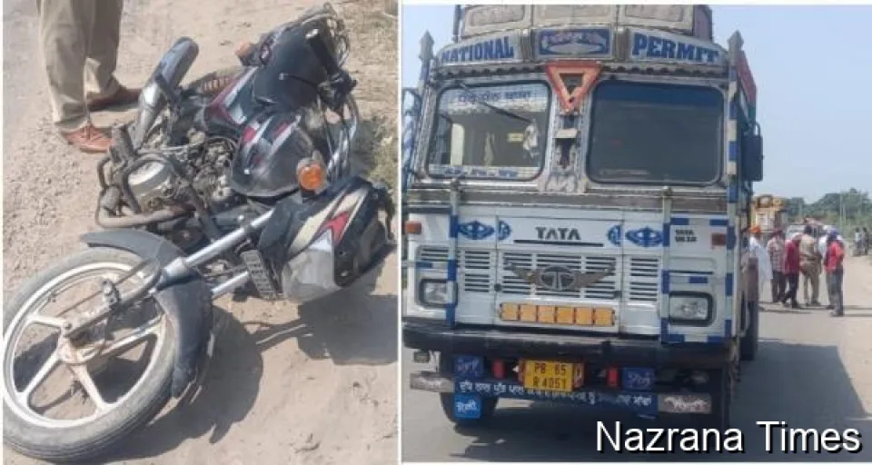 ਟੈਂਕਰ ਅਤੇ ਮੋਟਰਸਾਈਕਲ ਦੀ ਟੱਕਰ ਨਾਲ ਪਤੀ ਪਤਨੀ ਦੀ ਮੌਤ    ਸੜਕ ਵਿਚਕਾਰ ਖੜੀ ਕਰੇਨ ਬਣੀ ਹਾਦਸੇ ਦਾ ਕਾਰਨ