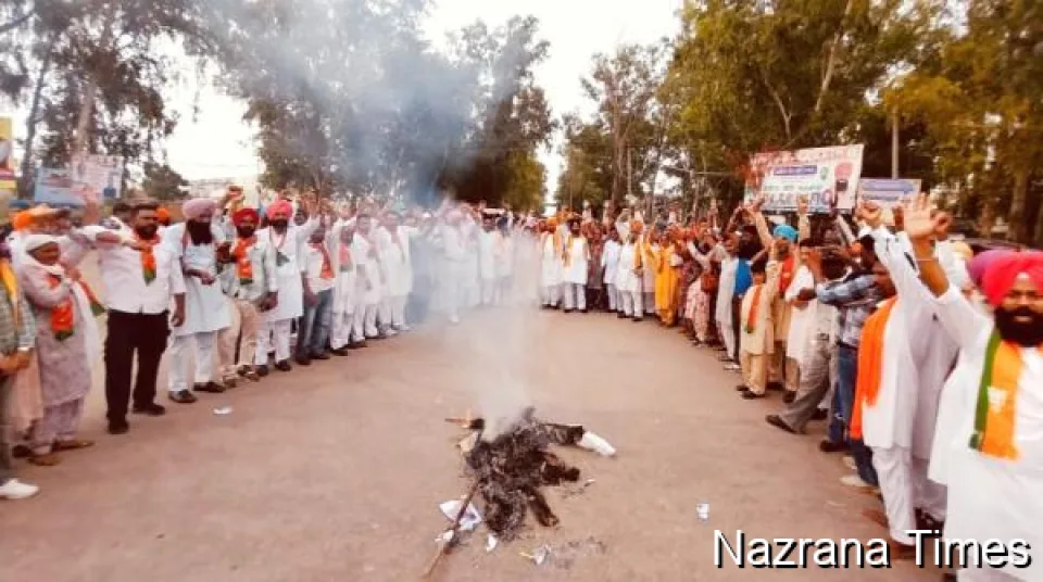 ਭਾਜਪਾ ਆਗੂਆਂ ਨੇ ਜ਼ਿਲ੍ਹਾ ਪ੍ਰਧਾਨ ਹਰਜੀਤ ਸਿੰਘ ਸੰਧੂ ਦੀ ਅਗਵਾਈ ਹੇਠ ਫੂਕਿਆ ਮੁੱਖ ਮੰਤਰੀ ਭਗਵੰਤ ਮਾਨ ਦਾ ਪੁਤਲਾ