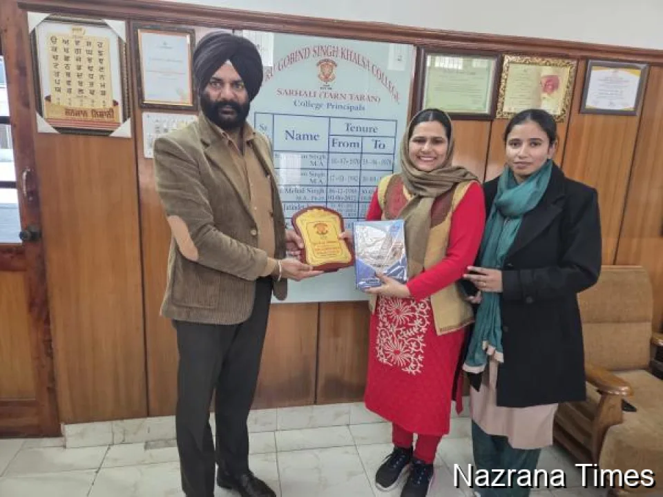 ਸਰਹਾਲੀ ਕਲਾਂ 25 ਦਸੰਬਰ ( ਜੁਗਰਾਜ ਸਿੰਘ ਸਰਹਾਲੀ ) ਗੁਰੂ ਗੋਬਿੰਦ ਸਿੰਘ ਖਾਲਸਾ ਕਾਲਜ ਸਰਹਾਲੀ ਦੀ ਸਥਾਪਨਾ ਸੰਨ 1970 ਵਿੱਚ ਸੰਤ ਬਾਬਾ ਤਾਰਾ ਸਿੰਘ ਜੀ ਵੱਲੋਂ ਕੀਤੀ ਗਈ ਸੀ।ਕਾਲਜ ਦੇ ਮੌਜੂਦਾ ਸਰਪ੍ਰਸਤ ਸੰਤ ਬਾਬਾ ਸੁੱਖਾ ਸਿੰਘ ਜੀ ਦੀ ਸਰਪ੍ਰਸਤੀ ਹੇਠ ਕਾਲਜ ਵਿੱਦਿਆ ਦਾ ਚਾਨਣ ਫੈਲਾਉਣ ਤੋਂ ਇਲਾਵਾ ਇਲਾਕੇ ਵਿੱਚ ਸਮਾਜ ਪ੍ਰਤੀ ਆਪਣੀ ਜ਼ਿੰਮੇਵਾਰੀ ਨੂੰ ਵੀ ਵਧੀਆ ਢੰਗ ਨਾਲ ਨਭਾ ਰਿਹਾ ਹੈ।ਅੱਜ ਕਾਲਜ ਦੇ ਪ੍ਰਿੰਸੀਪਲ ਜਸਬੀਰ ਸਿੰਘ ਨੇ ਵਿਦਿਆ ਦੇ ਖੇਤਰ ਵਿੱਚ ਯੋਗਦਾਨ ਪਾਉਣ ਵਾਲੀ ਸਾਇੰਸ ਲੈਕਚਰਾਰ ਕੁਲਦੀਪ ਕੌਰ ਚੰਬਾ ਧਰਮ ਪਤਨੀ ਸੀਨੀਅਰ ਪੱਤਰਕਾਰ ਹਰਪ੍ਰੀਤ ਸਿੰਘ ਚੰਬਾ ਨੂੰ ਕਾਲਜ ਚੋਂ ਪੁੱਜਣ ਤੇ ਵਿਸ਼ੇਸ਼ ਤੌਰ ਤੇ ਸੁੰਦਰ ਯਾਦਗਾਰੀ ਚਿੰਨ ਦੇ ਕੇ ਸਨਮਾਨਿਤ ਕੀਤਾ।ਇਸ ਮੌਕੇ ਪ੍ਰਿੰਸੀਪਲ ਸਰਹਾਲੀ ਨੇ ਦੱਸਿਆ ਕਿ ਕੁਲਦੀਪ ਕੌਰ ਚੰਬਾ ਨੇ ਸ੍ਰੀ ਗੁਰੂ ਹਰਿਕ੍ਰਿਸ਼ਨ ਪਬਲਿਕ ਸਕੂਲ ਤਰਨ ਤਾਰਨ ਵਿਖੇ ਬਤੌਰ ਲੈਕਚਰਾਰ ਦੀ ਸੇਵਾ ਦੇ ਨਾਲ-ਨਾਲ ਐਨ.ਸੀ.ਸੀ ਵਿੱਚ ਵੀ ਬਤੌਰ ਲੈਫਟੀਨੈਂਟ ਰੈਂਕ ਲੈ ਕੇ ਸਕੂਲੀ ਵਿਦਿਆਰਥੀਆਂ ਨੂੰ ਪੜ੍ਹਾਈ ਦੇ ਨਾਲ-ਨਾਲ ਐਨ.ਸੀ.ਸੀ ਦੀ ਟ੍ਰੇਨਿੰਗ ਦੇ ਕੇ ਉਨ੍ਹਾਂ ਦਾ ਜੀਵਨ ਪੱਧਰ ਉੱਚਾ ਕੀਤਾ।ਇੰਨਾ ਦੀ ਮਿਹਨਤ ਸਦਕਾ ਬਹੁਤ ਸਾਰੇ ਵਿਦਿਆਰਥੀ ਦੇਸ਼ਾਂ ਤੇ ਵਿਦੇਸ਼ਾਂ ਵਿੱਚ ਮਾਅਰਕੇ ਮਾਰ ਰਹੇ ਹਨ।ਹੁਣ ਇਹ ਲਗਭਗ ਪਿਛਲੇ ਦੋ ਸਾਲਾਂ ਤੋਂ ਸੈਂਟ ਫਰਾਂਸਿਸ ਸਕੂਲ ਤਰਨ ਤਾਰਨ ਵਿਖੇ ਬਤੌਰ ਸਾਇੰਸ ਲੈਕਚਰਾਰ ਦੀਆਂ ਸੇਵਾ ਨਿਭਾ ਰਹੀ ਹੈ।ਸਾਡੇ ਲਈ ਵੀ ਬੜੇ ਮਾਣ ਵਾਲੀ ਗੱਲ ਹੈ ਕਿ ਸਾਡੇ ਕਾਲਜ ਵਿੱਚ ਇਨ੍ਹਾਂ ਦੀ ਹੋਣਹਾਰ ਵਿਦਿਆਰਥਣ ਰਹੀ ਪ੍ਰੋਫੈਸਰ ਭਵਨਜੋਤ ਕੌਰ ਇਨ੍ਹਾਂ ਦੇ ਪਾਏ ਹੋਏ ਪੂਰਨਿਆਂ ਦੇ ਚੱਲ ਕੇ ਸਾਡੇ ਕਾਲਜ ਦੇ ਵਿਦਿਆਰਥੀਆਂ ਨੂੰ ਉੱਚ ਵਿਦਿਆ ਦੇ ਰਹੀ ਹੈ।ਇਸ ਮੌਕੇ ਲੈਕਚਰਾਰ ਕੁਲਦੀਪ ਕੌਰ ਚੰਬਾ ਨੇ ਕਾਲਜ ਦੇ ਪ੍ਰਿੰਸੀਪਲ ਜਸਬੀਰ ਸਿੰਘ ਵੱਲੋਂ ਕਾਲਜ 'ਚ ਪੁੱਜਣ ਤੇ ਸਨਮਾਨਿਤ ਕਰਨ ਤੇ ਉਨਾਂ ਦਾ ਧੰਨਵਾਦ ਕੀਤਾ ਤੇ ਵਾਅਦਾ ਕੀਤਾ ਕਿ ਜੇਕਰ ਕਾਲਜ ਚੋਂ ਵਿਦਿਆ ਪ੍ਰਤੀ ਕੋਈ ਸੇਵਾਵਾਂ ਦੀ ਲੋੜ ਹੋਈ ਤਾਂ ਉਹ ਨਿਸ਼ਕਾਮ ਸੇਵਾ ਲਈ ਹਾਜ਼ਰ ਹੈ।