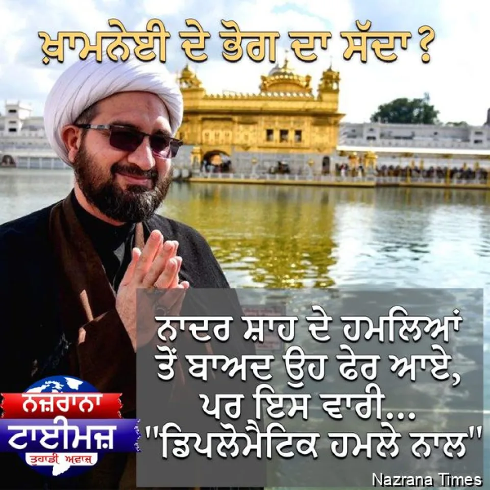 ਇਰਾਨ ਦੇ ਇੰਡੀਆ 'ਚ ਸਫ਼ੀਰ ਡਾ. ਮੁਹੰਮਦ ਹੁਸੈਨ ਜ਼ਿਆਨੀਆ ਦੀ ਅਗਵਾਈ ਵਿੱਚ ਇੱਕ ਈਰਾਨੀ ਵਫ਼ਦ ਨੇ ਅੰਤਰ-ਧਰਮ ਸਬੰਧਾਂ ਨੂੰ ਵਧਾਉਣ ਦੇ ਨਾਮ ਹੇਠ 8 ਅਪ੍ਰੈਲ, 2026 ਨੂੰ ਅੰਮ੍ਰਿਤਸਰ ਵਿੱਚ ਸ੍ਰੀ ਦਰਬਾਰ ਸਾਹਿਬ (ਸ੍ਰੀ ਹਰਿਮੰਦਰ ਸਾਹਿਬ) ਦਾ ਦੌਰਾ ਕੀਤਾ। ਇਹ ਦੌਰਾ ਕੀਤਾ ਹੀ ਕਿਹਾ ਜਾ ਸਕਦਾ ਹੈ. ਡਾ. ਮੁਹੰਮਦ ਹੁਸੈਨ ਜ਼ਿਆਨੀਆ ਨੇ ਸ਼੍ਰੋਮਣੀ ਗੁਰਦੁਆਰਾ ਪ੍ਰਬੰਧਕ ਕਮੇਟੀ (ਐਸਜੀਪੀਸੀ) ਦੇ ਅਧਿਕਾਰੀਆਂ ਨੂੰ ਇਕ ਸੱਦਾ ਪੱਤਰ ਦਿੱਤਾ ਜਿਸ ਦੇ ਤਹਿਤ 12 ਅਪ੍ਰੈਲ ਨੂੰ ਨਵੀਂ ਦਿੱਲੀ ਵਿੱਚ ਇਰਾਨ ਦੇ ਮਰਹੂਮ ਸੁਪਰੀਮ ਲੀਡਰ, ਅਯਾਤੁੱਲਾ ਅਲੀ ਖਮੇਨੀ ਦੇ ਸਨਮਾਨ ਵਿੱਚ ਇੱਕ ਯਾਦਗਾਰੀ ਸਮਾਗਮ 'ਚ ਸ਼ਾਮਲ ਹੋਣ ਦਾ ਹੁਕਮ ਕੀਤਾ ਗਿਆ ਹੈ। ਸ਼ਬਦ ਹੁਕਮ ਇਸ ਲਈ ਵਰਤਿਆ ਗਿਆ ਹੈ ਕਿ ਇਸ ਵੇਲੇ ਕੁਲ ਦੁਨੀਆ ਨੂੰ ਪਤਾ ਹੈ ਕਿ SGPC ਅਤੇ ਇਸਦੇ ਅਹੁਦੇਦਾਰ ਕਿੰਨੇ ਕੁ ਆਜ਼ਾਦ ਹਨ ਅਤੇ ਆਪਣੀ ਮਰਜ਼ੀ ਨਾਲ ਫੈਸਲੇ ਲੈ ਸਕਣ ਦੇ ਸਮਰਥ ਹਨ.