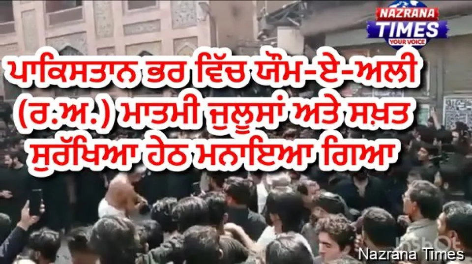 ਲਾਹੌਰ, 11 ਮਾਰਚ 2026, ਨਜ਼ਰਾਨਾ ਟਾਈਮਜ ਪਾਕਿਸਤਾਨ ਵਿੱਚ ਬੁੱਧਵਾਰ (21 ਰਮਜ਼ਾਨ 1447 ਹਿਜਰੀ) ਨੂੰ ਇਸਲਾਮ ਦੇ ਚੌਥੇ ਖਲੀਫਾ ਅਤੇ ਹਜ਼ਰਤ ਮੁਹੰਮਦ (ਸ.ਅ.ਵ.) ਦੇ ਭਤੀਜੇ ਤੇ ਦਾਮਾਦ ਹਜ਼ਰਤ ਅਲੀ ਇਬਨ ਅਬੀ ਤਾਲਿਬ (ਰ.ਅ.) ਦੀ ਸ਼ਹਾਦਤ ਦੀ ਵਰ੍ਹੇਗੰਢ ਬੜੀ ਅਕੀਦਤ ਨਾਲ ਮਨਾਈ ਗਈ। ਦੇਸ਼ ਭਰ ਵਿੱਚ ਮਾਤਮੀ ਜੁਲੂਸ, ਮਜਲਿਸਾਂ ਅਤੇ ਮਾਤਮੀ ਰਸਮਾਂ ਅਦਾ ਕੀਤੀਆਂ ਗਈਆਂ, ਜਿਨ੍ਹਾਂ ਵਿੱਚ ਲੱਖਾਂ ਅਕੀਦਤਮੰਦਾਂ ਨੇ ਹਿੱਸਾ ਲਿਆ। ਵਿਸਤ੍ਰਿਤ ਸੁਰੱਖਿਆ ਪ੍ਰਬੰਧਾਂ ਕਾਰਨ ਦਿਨ ਸ਼ਾਂਤੀਪੂਰਨ ਢੰਗ ਨਾਲ ਬੀਤਿਆ।